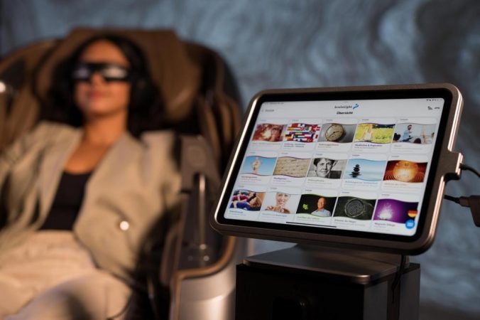 Das System zeichnet sich durch die für brainLight charakteristische audio-visuelle Entspannungstechnologie aus. Während die Mechanik den Körper regeneriert, führt eine präzise abgestimmte Komposition aus Licht, Ton und Sprache über eine Visualisierungsbrille und Kopfhörer in die mentale Tiefenentspannung. Diese Einheit aus Massage und Entspannung macht das System zu einer einzigartigen Lösung für die ganzheitliche Regeneration von Körper und Geist.