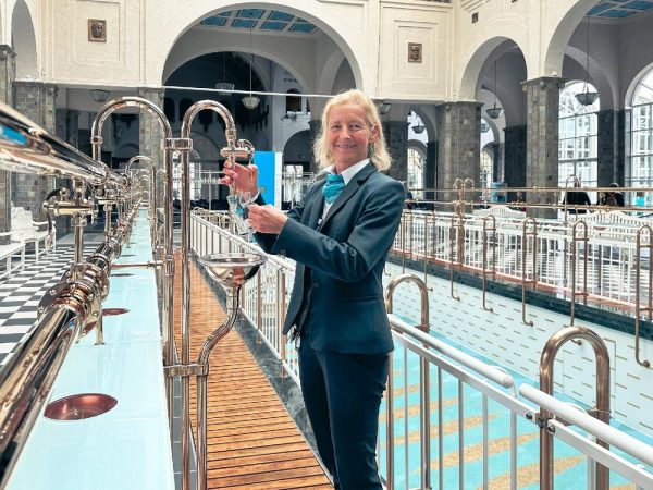 In Bad Kissingen sprudeln sieben einzigartige mineralstoffreiche Heilquellen und begründen bis heute seinen Ruf als Weltbad. Die heilende, lindernde und vorbeugende Wirkung von Heilwasser erkannten Mediziner schon vor 500 Jahren. Bereits seit den 1830er Jahren gibt es Personal, das Heilwasser ausschenkt. „Zur damaligen Zeit konnten sich Gäste und Einheimische noch selbst an den Brunnen bedienen, allerdings lag der Wasserspiegel sehr tief, weswegen es vielen Menschen zu mühsam war, bis zum Brunnen hinabzusteigen. Dadurch etablierte sich schnell eine neue Dienstleistung: die personelle Hilfe und Unterstützung beim Ausschank“, erzählt Sabine Krimmel, eine der Brunnenfrauen in Bad Kissingen. Im Jahr 1911 wurde die Wandelhalle mit integrierter Brunnenhalle eröffnet: Seitdem schenken die Brunnenfrauen das Heilwasser aus, auf Wunsch auch erwärmt, und können es von seiner natürlichen Kohlensäure befreien.
