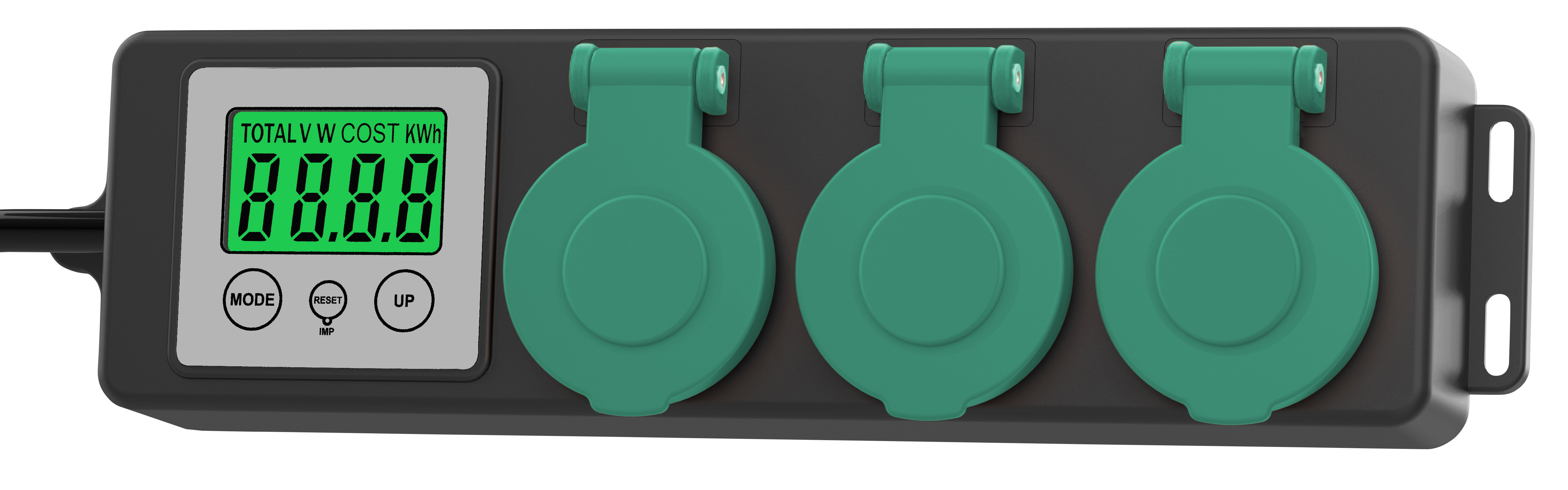 - Robuste 3-fach-Steckdosenleiste mit integriertem Energiekostenmesser