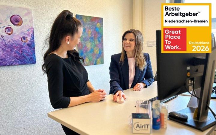 Gemeinsam hat AirITSystems zum zweiten Mal in Folge nach 2024 das Zertifikat als „GreatPlaceToWork“ erworben. Mit einer Zustimmungsquote zur Aussage „Alles in allem ist das hier ein sehr guter Arbeitsplatz“ von 85% konnte sich der auf Sicherheits- und Netzwerklösungen spezialisierte IT-Dienstleister aus Niedersachen um 5 Prozentpunkte gegenüber der ersten Teilnahme in 2023 noch steigern.