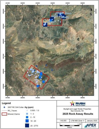 Rush Gold ist ein kanadisches Bergbau-Explorationsunternehmen, das sich auf die Weiterentwicklung seines Goldgrundstücks Skylight im Republic Mining District im Nye County (Nevada, USA) konzentriert. Rush Gold hält zudem eine Option auf das Grundstück Legal Tender, ein historisches Silber-Gold-Projekt 62 Kilometer nordwestlich von Tonopah (Nevada).