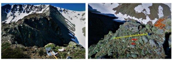 Im südlichen Teil der Liegenschaft ist das Peridotit durch disseminierten Magnetit und Chromit gekennzeichnet, sowie durch zahlreiche disseminierte sowie adern- sowie kluftfüllende apfelgrün- bis dunkelgrüne Mineralien wie Pikrolit und Lizardit. Im nördlichen Teil der Liegenschaft ist das Peridotit massiv, schwarz und weist weniger Ader- und Bruchstrukturen auf; die Veränderung der Peridotitstruktur scheint jedoch kaum oder gar keinen Einfluss auf den Ni-Cr-Co-Gehalt zu haben, der zwischen 1.700 und 3.800 ppm Ni, 1.000 und 3.000 ppm Cr sowie 100 und 150 ppm Co liegt. Mehrere peridotitgebundene Zonen enthalten feine und grobe Ni-Fe-Legierungskörner (Awaruit), die als Felsgrate im östlichen Zentralteil der Claim-Gruppe in einer Höhe von 1.700 bis 2.050 m zutage treten. In serpentinisierten ultramafischen Gesteinen wurde disseminiertes, feines bis gröberes Awaruit gefunden.