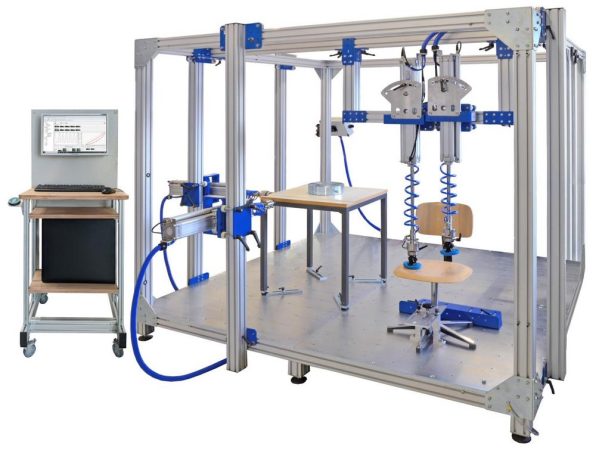 Für die Lastaufbringung kommen – je nach Prüfaufgabe – pneumatische Prüfachsen und/oder Elektrozylinder zum Einsatz. Diese Kombination ermöglicht ein breites Spektrum an Prüfverfahren für unterschiedlichste Möbel und Bauteile. Abgedeckt werden statische, dynamische und zyklische Belastungsprüfungen ebenso wie einachsige und mehrachsige Anwendungen. Die Systeme sind individuell konfigurierbar und lassen sich exakt auf individuelle  Anforderungen auslegen.