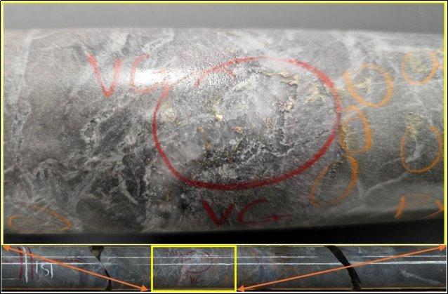 –          In Bohrloch N2-226-24 wurde sichtbares Gold angetroffen.