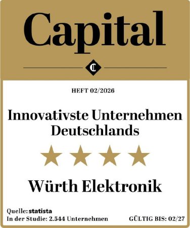 In der renommierten Studie des Wirtschaftsmagazins Capital und des Statistikportals Statista wurde Würth Elektronik erneut mit vier Sternen ausgezeichnet. Für die aktuelle Studie bewerteten 2785 Innovationsfachleute insgesamt mehrere tausend Unternehmen aus 20 Branchen. 503 Unternehmen wurden in diesem Jahr in die Liste der „Innovativsten Unternehmen Deutschlands“ aufgenommen. Die Auszeichnung basiert auf einer umfassenden Beurteilung von Produkt- und Dienstleistungsinnovationen, Prozessen sowie Kultur- und Sozialinnovationen.