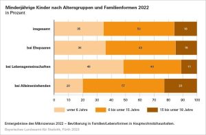 Wie der Mikrozensus zeigt, leben in Bayern rund 2,2 Millionen minderjährige Kinder, von denen 13 Prozent (278 000) bei einem alleinerziehenden Elternteil aufwachsen. Während in