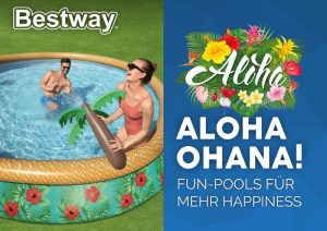 Es muss kein Flug nach Hawaii sein, um Urlaubsgefühl zu erleben: Ob eingebauter Wassersprinkler, tropische Designs oder Sonnenschutzdach, die Fun-Pools von Bestway® bieten Spaß für