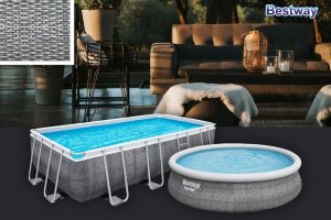 . Individuelles Ambiente für das Ferienressort zuhause Trendstarkes Design in Rattan-Optik – Passend zum aktuellen Garten-Ambiente erscheint die Rattan-Poolvielfalt von Bestway in lichtgrau über schiefergrau