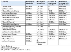 In der nachfolgenden Übersicht präsentieren wir die Preise von klassischen Filialkonten – wenn es diese noch gibt, die man auch über die Filiale führen kann.