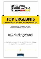Zum dritten Mal hat BIG direkt gesund an dem branchenübergreifenden Wettbewerb „Deutschlands Kundenchampions“ teilgenommen und konnte sich erneut in den Kreis der Preisträger einreihen. Gemeinsam