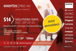 Vom 22. bis 23. September 2021 trifft sich die ProAV/IT-Branche wieder zu den mittlerweile dreizehnten S14 Solutions Days in der Exertis Pro AV Zentrale (ehemals