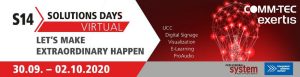 Unter dem Motto „Let`s make extraordinary happen“ lädt COMM-TEC Exertis von 30.09. bis 02.10.2020 zu den Virtual S14 Solutions Days. Insgesamt 40 Hersteller präsentieren an