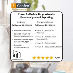 Power BI Modul Kurse Mit den Power BI Modul Kursen erwerben Sie fundiertes Wissen für professionelle Datenanalyse und modernes Reporting. Die Online-Module zeigen, wie Sie