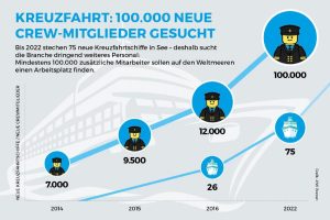 Kreuzfahrt-Boom sorgt für Arbeitsplatz-Boom: 100.000 neue Arbeitsplätze an Bord von Kreuzfahrtschiffen entstehen in den kommenden drei Jahren Zahl der deutschen Kreuzfahrtgäste verdreifacht sich, Reedereien suchen