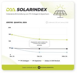 Im ersten Quartal 2025 ist das Interesse an PV-Anlagen bei DAA mäßig bis solide. Auf Bundesebene brechen die PV-Zubauzahlen im März auf unter 800 Megawatt