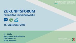 WeiterlesenAm 15. September 2025 findet im ButterRaum der Kokerei Hansa in Dortmund das Zukunftsforum „Perspektive im Gastgewerbe“ statt, bei dem von 11 bis 16 Uhr