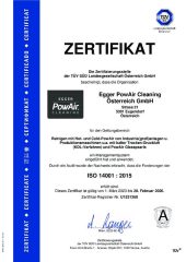 Industrycleaner Egger PowAir Cleaning GmbH certified by TÜV – SÜD until 2026 ISO 14001 : 2015. Über EPAC 14 GmbH – Egger PowAir Cleaning WE’VE