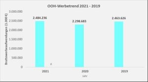 Nielsen Werbetrend 2021: Die Bruttowerbeaufwendungen für Out of Home steigen um 8 Prozent gegenüber 2020, der Umsatzrekord von 2019 ist eingestellt. Der Optimismus der deutschen