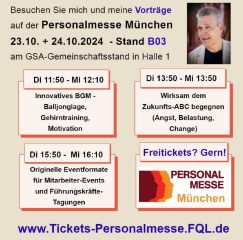 Die GSA (German Speakers Association) präsentiert sechs Speaker auf der Personalmesse München am 23.10. + 24.10.2024 im M/O/C München. Jede/r Speaker/in hat an jedem messetag drei Vortragsslots!