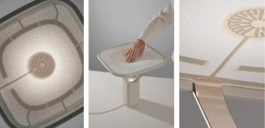 Nur mit einer Berührung des gestrickten Schirms wird die Lampe, die das Fraunhofer IZM in Kooperation mit dem WINT Design Lab entwickelt hat, eingeschaltet und