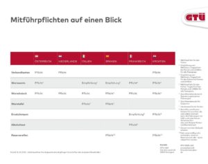 Die GTÜ rät, sich vor der Fahrt in die Ferien über die Mitführpflichten im Ausland zu informieren Vorplanung reduziert Aufwand und Kosten Auch Ferienmietwagen auf
