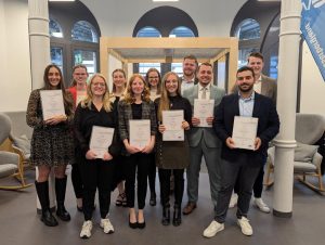 Am vergangenen Donnerstag verabschiedete die Hochschule Weserbergland (HSW) feierlich 13 Absolventinnen und Absolventen des berufsbegleitenden Bachelorstudiengangs Betriebswirtschaftslehre (B. A.). Im zedita.digitalhub am Hamelner Bahnhof erhielten
