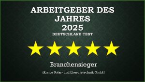 . Erneute Auszeichnung für iKratos GmbH Arbeitgeber des Jahres 2025 in Deutschland Die iKratos Solar- und Energietechnik GmbH wurde zum „Arbeitgeber des Jahres 2025“ in