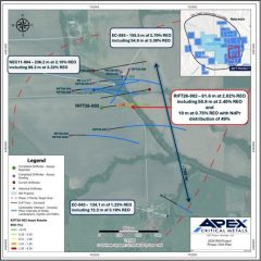 81,6 m mit 2,02 % REO(1), einschließlich 50,9 m mit 2,40 % REO (RIFT26-002). Mehrere (17) Proben mit Gehalten von >3,00 % REO. – Die Bohrung RIFT26-002 war