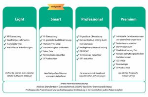 Sie möchten Ihre Inhalte schnell, zuverlässig und wirtschaftlich übersetzen lassen? Mit unseren vier Übersetzungspaketen erhalten Sie genau die Unterstützung, die Sie dafür brauchen – kombiniert