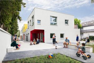 Im Berliner Stadtteil Mahlsdorf, Ecke Dirschauer Straße – Thorner Straße, freuen die Eltern und Kinder sich über eine neue Kindertagesstätte in moderner modularer Bauweise von