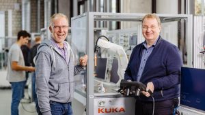 Sechs vernetzte KUKA ready2_educate Zellen, gekoppelt mit Computer-Arbeitsplätzen zur Programmierung: Seit dem Schuljahr 21/22 rüstet ein hochmodernes Lern-Labor Schülerinnen und Schüler der Gewerblichen Schule (GS) im baden-württembergischen Göppingen für ein Arbeitsleben