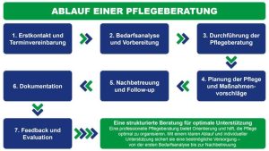 Erstkontakt und Terminvereinbarung Der erste Schritt in der Pflegeberatung beginnt mit der Kontaktaufnahme durch den Pflegebedürftigen oder einen Angehörigen. Terminvereinbarung: Ein Termin wird entweder