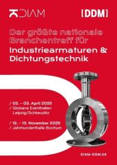 Besucheranmeldung zur DIAM & DDM im November in Bochum ab sofort möglich Die Besucheranmeldung für den nationalen Branchentreff für Industriearmaturen & Dichtungstechnik ist seit einigen
