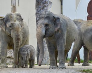 In der vergangenen Woche war der kleine Elefantenbulle Otto zum ersten Mal nicht nur mit Mama Temi, sondern auch mit seinen beiden Tanten Mangala und