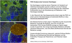 Die infektiöse Endokarditis ist eine lebensbedrohliche Biofilminfektion der Herzinnenhäute einschließlich der Herzklappen. Oft werden dabei Herzklappen so stark geschädigt, dass sie ersetzt werden müssen. Patientinnen