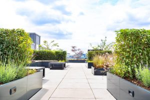 Im Zuge dieses Projekts in Düsseldorf wurde eine zuvor rein funktionale Dachfläche zu einem hochwertigen, dauerhaft nutzbaren Aufenthaltsbereich entwickelt. Grundlage dafür bildet das Optigrün Verkehrsdach