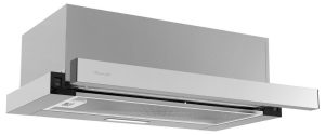 Effektive Geruchsfilterung in unauffälligem Küchendesign: Die 60 Zentimeter breite Flachschirm-Dunstabzugshaube von Rosenstein & Söhne erreicht eine Saugleistung von 350 m³ pro Stunde bei einer Leistung