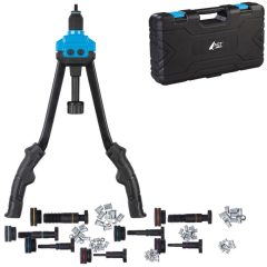 Die 40 cm lange Nietmutternzange von AGT ermöglicht kraftsparendes Arbeiten bei der Blechbearbeitung, auch an Auto- und Motorradkarosserien. Über eine Stellschraube lässt sich die Ziehtiefe