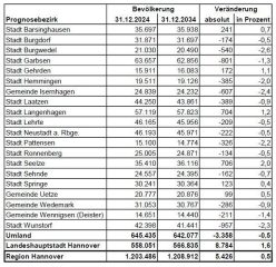 Die Landeshauptstadt Hannover wächst in den kommenden zehn Jahren, die Bevölkerung im Umland der Region Hannover geht leicht zurück: Das ist das zentrale Ergebnis der