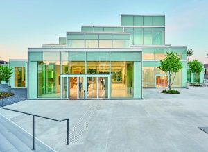 2024 haben die Stadt Köln, die Stiftung „Lebendige Stadt“ und das Unternehmen Schüco mit der photokatalytischen Textilfassade an der Volkshochschule in der Cäcilienstraße in der