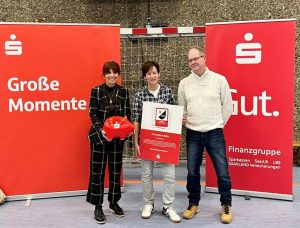 Cornelia Hoffmann-Bethscheider, Präsidentin des Sparkassenverbandes Saar, hat bei einer Feierstunde im Vereinsheim der Sportfreunde Rilchingen-Hanweiler (SF Hanweiler) Christiane Bähr, Trainerin und Abteilungsleiterin Handball des Vereins,