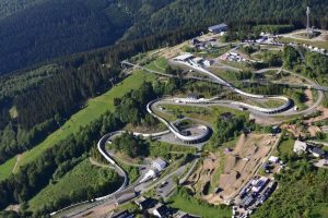 Gleich zwei Förderbescheide hatte Regierungspräsident Heinrich Böckelühr für die Bob- und Rodelbahn Winterberg bei einem Kurzbesuch vor Ort im Gepäck. Zum einen stellt das Land