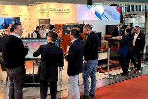 Mit der großen LED-Video-Wall und dem durchgehend live-vorgeführten Palettenwechsler war der Stand der SW-Paratus GmbH ein Blickfang am Eingang Ost der LogiMAT in Stuttgart. Doch