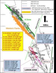 Highlights: Infill- und Step-Out-Bohrungen sowie Gesteinsproben3 haben ergeben, dass die neue Zone Larkin von Beta Hunt weiterhin die Existenz einer potenziellen dritten großen Goldressource neben