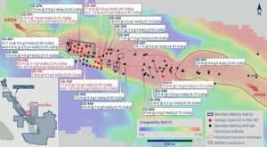 Höhepunkte: Meridian bohrt mehrere Abschnitte mit einer flachliegenden hochgradigen Au-Cu-Ag- und Zn-Mineralisierungen bei Santa Helena: – CD-660: 11,6m @ 5,9g/t AuEq (4,0% CuEq) ab 42,0m*;
