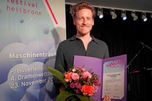 Leon Engler gewinnt mit »Wo die Götter kauern wie Hunde« den internationalen Dramenwettbewerb 2025, den das Theater Heilbronn und das Science Center experimenta zum vierten