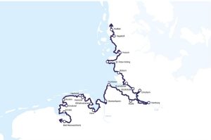 Der Nordseeküsten-Radweg führt auf rund 930 Kilometern entlang der deutschen Nordseeküste – von der niederländischen Grenze bis nach Dänemark. Zwischen Deichen, Marschlandschaften und historischen Orten