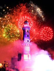 Das Warnemünder Turmleuchten wird auch 2024 wieder die größte Neujahrsinszenierung in ganz Europa werden. Rund 200 Menschen arbeiten derzeit daran, dass die Show aus Licht,