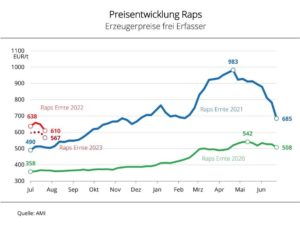 Die Ölsaatenerzeugung in der EU dürfte im kommenden Wirtschaftsjahr lediglich 0,4 % über Vorjahreslinie liegen, obwohl ein Flächenplus von 5 % erwartet wird. Auslöser dafür