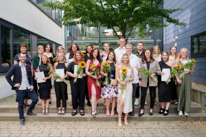 Den Abschluss endlich in der Tasche und Sonnenblumen in den Händen: Für 34 Absolventinnen und Absolventen geht es nun erst richtig in der Pflege los,